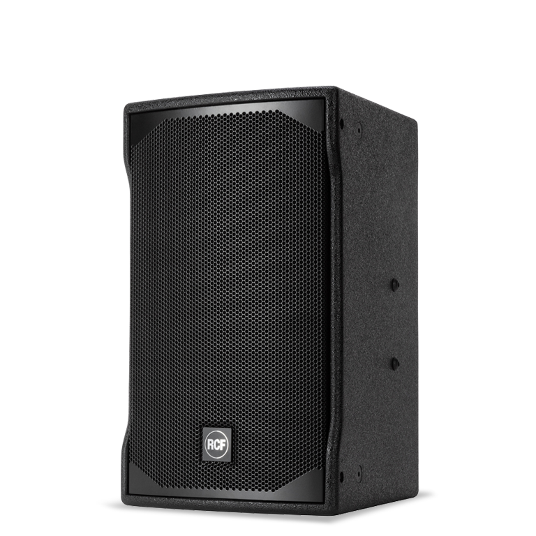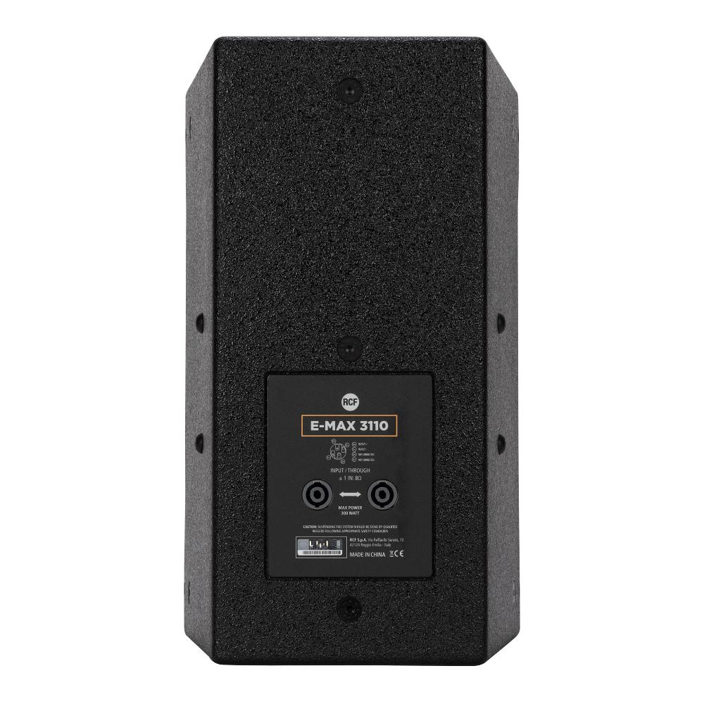 The full-range passive two-way RCF E-MAX series has been specifically designed as club systems for entertainment, to achieve the best nearfield quality, vocal coherence and a stable tonal balance even at high volume. The heavy-duty speaker cabinet is made of plywood coated with black textured acrylic paint. Featuring a 10” woofer with a 2.5” voice and a 1.0” compression driver with 1.4” voice coil. The LICC crossover design includes an electronic protection on high-frequency device. The rotatable 90°x70° horn and the available mounting accessories allow installation of the loudspeaker either vertically or horizontally in any environment and architectural constraint.
