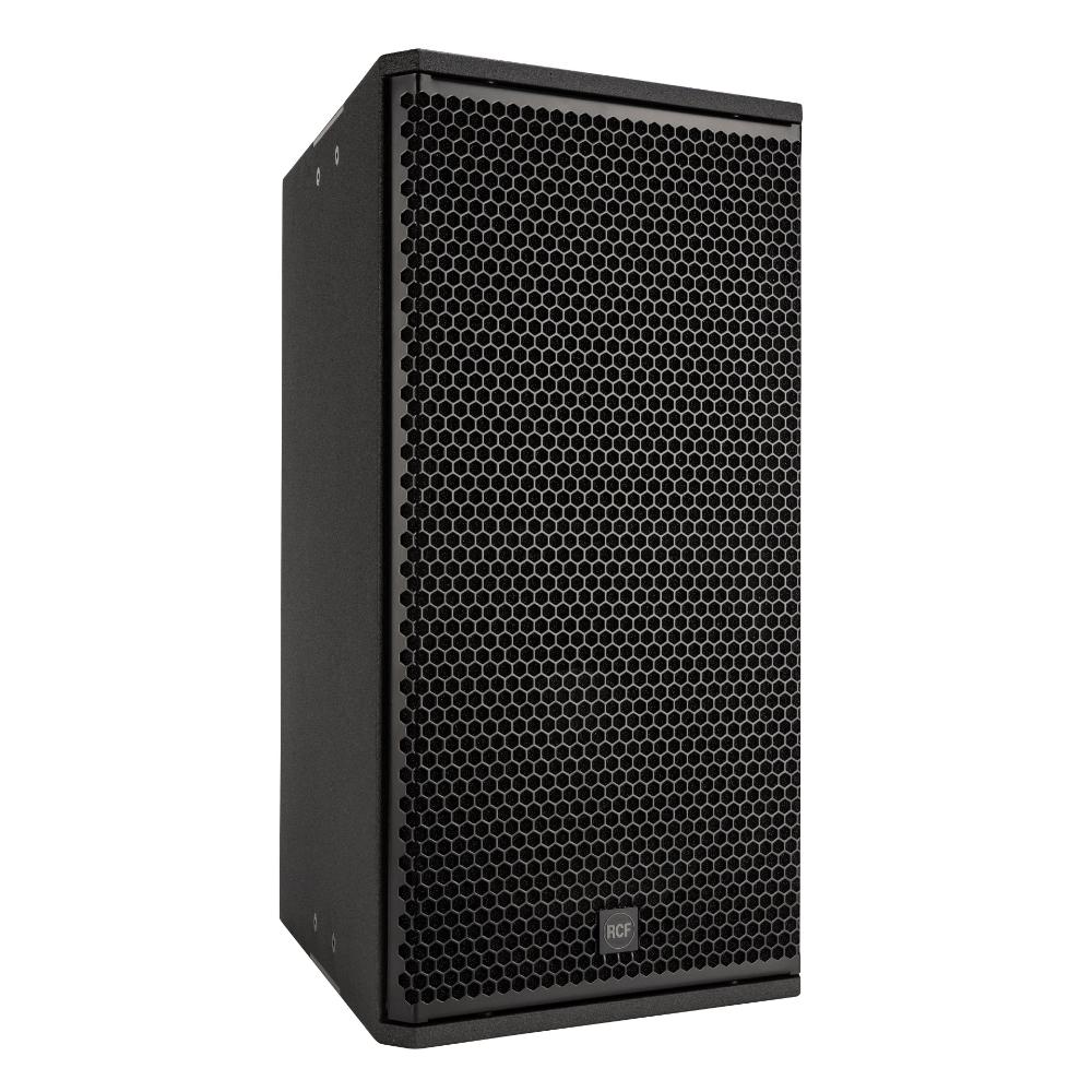El modelo Q 15 es un módulo de fuente de sonido puntual, biamplificado y de 2 vías, ideado para aplicaciones de tiro medio y largo. Combina un tamaño compacto con una altísima potencia de salida para la reproducción precisa de voz y música. El sistema está equipado con la última generación de transductores RCF Precision, conformados por un woofer de neodimio de 15'' y un transductor de compresión de titanio-neodimio de 4'' que ofrecen un total de 1500W de potencia, además de una directividad de 60° en el plano vertical y 22,5° en el horizontal. La forma trapezoidal de la caja ofrece un ángulo de acoplamiento de 22,5° a cada lado. Las aplicaciones para la Serie Q van desde las configuraciones de fuente puntual en aplicaciones de distancia media, a arrays de hasta 8 módulos en aplicaciones de tiro largo. La rejilla cuenta con recubrimiento electrostático y un revestimiento textil para protección contra el polvo. La caja está fabricada en contrachapado de abedul báltico con un acabado de pintura de poliurea negra, texturizada y altamente resistente. También incluye dos conectores SpeakON NL4 de Neutrik en el panel trasero para la biamplificación (4 polos).