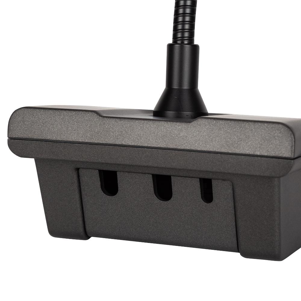 - Corpo in materiale plastico particolarmente resistente agli urti e agli sfregamenti, con braccio flessibile lungo 300 mm