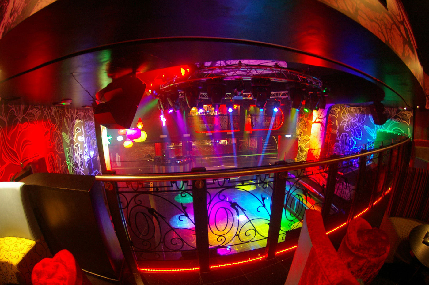 Darüber, auf der Balkonebene, ist in allen vier Ecken je ein Cluster angebracht, der paarweise aus zwei engabstrahlenden (60° x 40°) Acustica C5212L Zweiwegegehäusen mit 500W besteht. Diese sind von oben abgewinkelt auf die Tanzfläche gerichtet. Gleichzeitig sind 14 Acustica C3110 10” Zweiwegelautsprecher und ein S8015 Subwoofer strategisch so platziert, dass der Innenbereich gleichmäßig und ohne Überhöhungen beschallt wird.