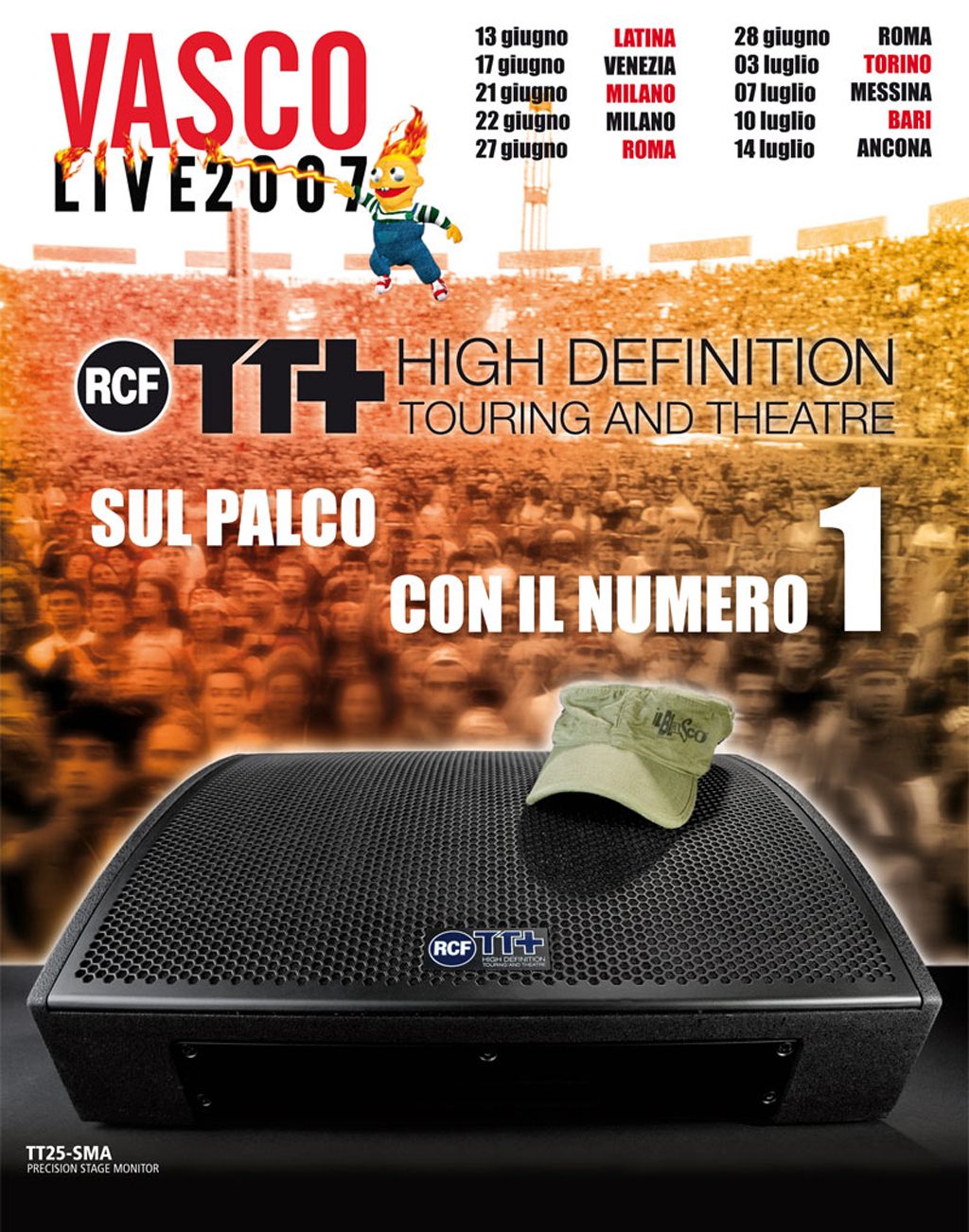 RCF has a leading role in the most important summer shows of Italy: Diego Spagnoli, Tour and Stage Manager of Vasco Rossi, has chosen the TT+ High Definition Touring and Theatre products for the stage monitoring of Vasco Live 2007.