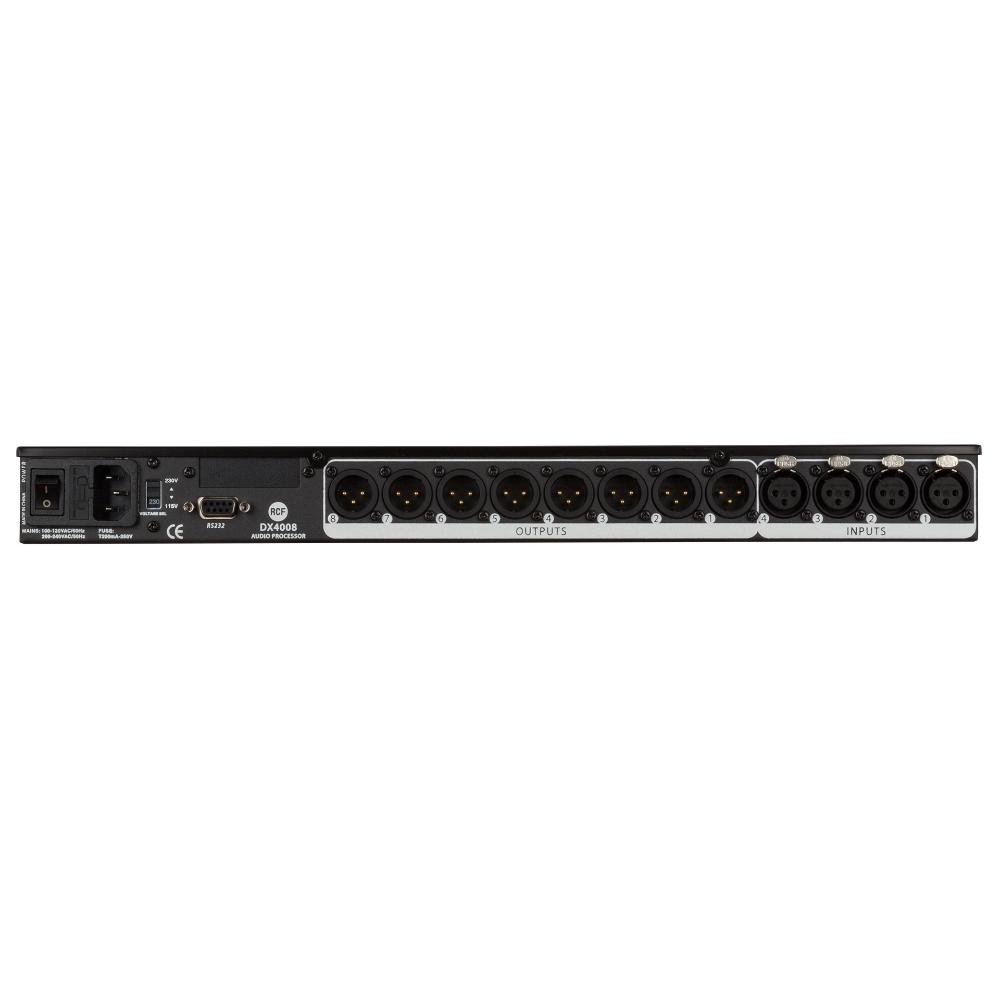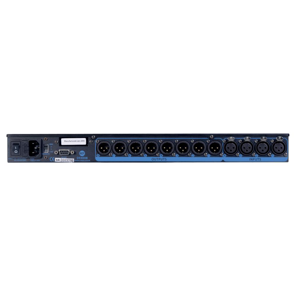 Der DX 4008 ist ein frei programmierbares, digitales 4 In – 8 Out Lautsprecher Managementsystem entwickelt für die Festinstallation und den Touringbetrieb. Mit 32-Bit (40-Bit erweitert) Fließkomma-Prozessoren und hochwertigsten 24-Bit Wandlern bietet er neueste Technologie für ein Maximum an Qualität. Der leistungsfähige DSP bietet entscheidende Vorteile mit minimierten Störsignalen und Verzerrungen im Vergleich zu üblichen 24-Bit-Prozessoren. Umfangreiche Einstellmöglichkeiten mit Ein- und Ausgangspegel, Laufzeitanpassung, Polarität, voll parametrischer 6- Band EQ, verschiedenste Frequenzweichentypen und umfangreiche Limiter pro Kanal ermöglichen in Kombination mit einem umfangreichen Routing flexibelste Anwendungsmöglichkeiten. Genaueste Entzerrung ermöglicht der EQ dank einer Auflösung in 1 Hz-Schritten. Der DX4008 kann in Echtzeit über das großzügige beleuchtete LC-Display oder über die im Lieferumfang enthaltene, komfortable PCSoftware programmiert werden.