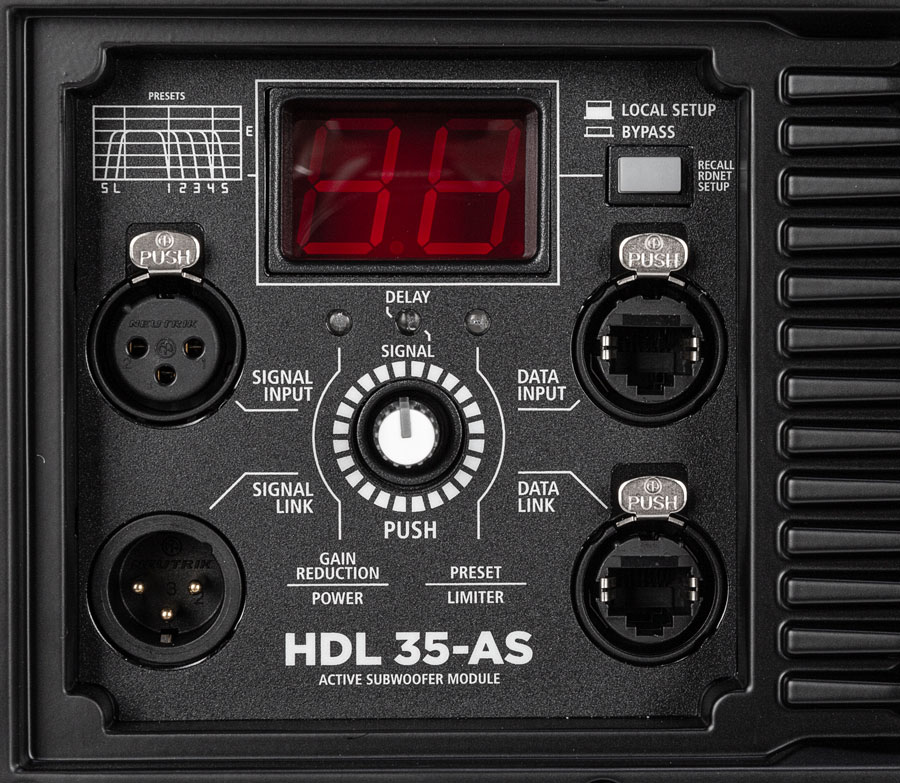 Das Bass-Modul HDL 35-AS für geflogene Anwendungen passt ideal zum Line Array HDL 26-A. Das Multiplex-Gehäuse aus baltischer Birke beherbergt einen 15-Zoll-Neodym-Tieftöner mit 4-Zoll-Schwingspule, der Frequenzen von 40 Hz bis 140 Hz mit größtmöglicher Linearität und minimalen Verzerrungen wiedergibt. Die integrierte Class-D-Endstufe leistet 2200 Watt und gewährleistet höchste Klangtransparenz bis zu einem maximalen Schalldruckpegel von 134 dB. Als Teil der professionellen HDL-Serie lässt sich das HDL 35-AS über RDNet steuern und überwachen.