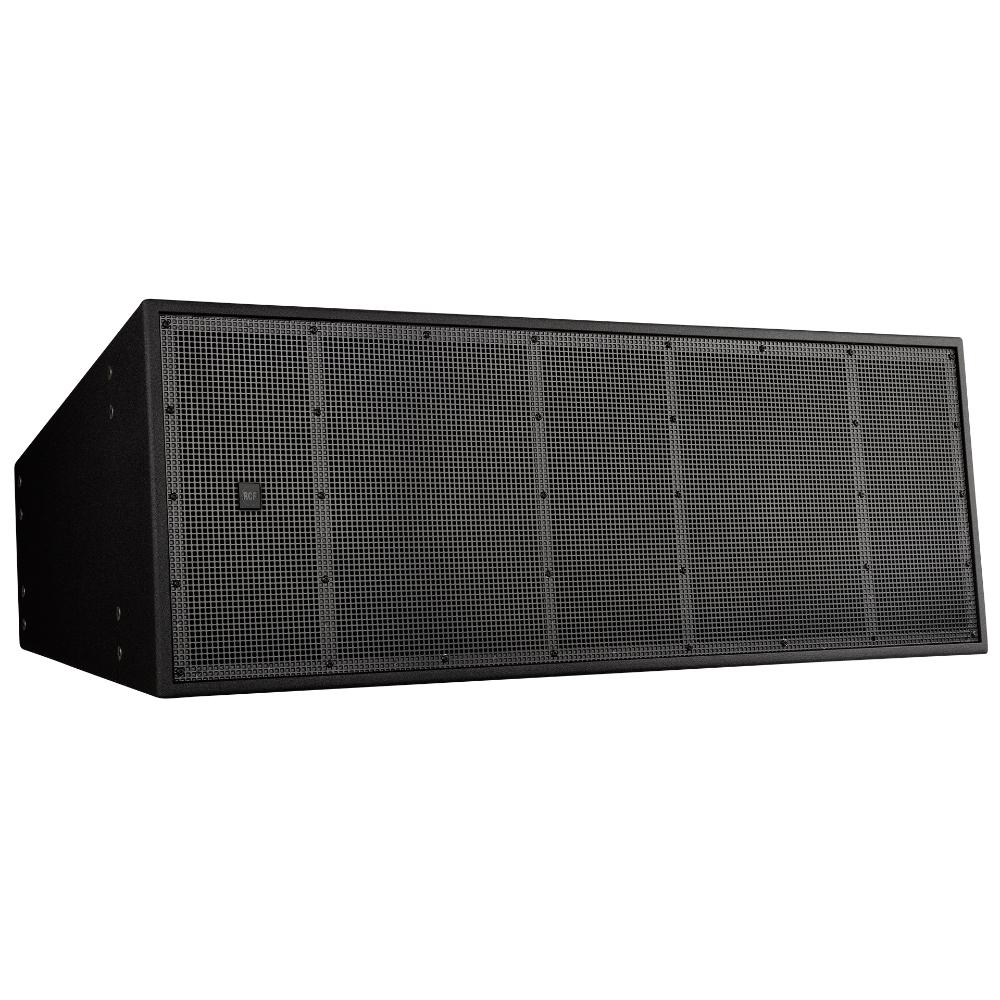 HVL 15-P is a three-way, bi-amp loudspeaker system for long-throw applications, outfitted with 2 x 15” woofers, 2 x 10” midranges, and 2 x 4.0” voice coil, titanium dome compression drivers. Equipped with the latest generation of RCF precision transducers with powerful neodymium magnets, HVL 15-P provides very high output and accurate sound and voice reproduction. The system, driven in bi-amped mode, can produce a max SPL of 145 dB MHF, handling 1000 W RMS (LF) + 900 W RMS (MF+HF). An internal passive filter provides crossover and equalization between the midranges and the compression drivers. The horizontal coverage is 45°, and the vertical coverage is 15°. A heavy-duty, weatherproof barrier strip provides connections. The cabinet is made of Baltic birch plywood. The finishing is a waterproof, textured, polyurea coating. The grille is in epoxy coated heavy-duty steel with open-cell fibers and water repellent woven-fabric backing.