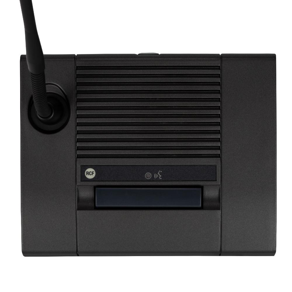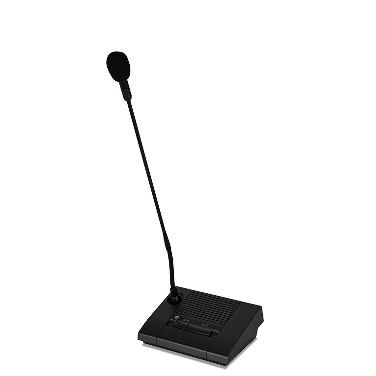 The desktop delegate microphone set MMS 3404D features a latched button to enable the microphone in mixed mode with other active MMS 3404D and MMS 3405P (if no priority button has been pressed on chairman’s set). The button is completed with a LED indicator, lit when pressed. Furthermore the microphone capsule has a LED ring that is ON when the microphone is active. The 46 cm gooseneck microphone mounted on the console has a cardioid pattern, while the miniature high quality transducer assures a good sound reinforcement in small size rooms without needing an additional sound reinforcement system. MMS 3404D are cascaded directly to one or both inputs available on MMS 3405P, by means of CAT 5FTP cable provided.
