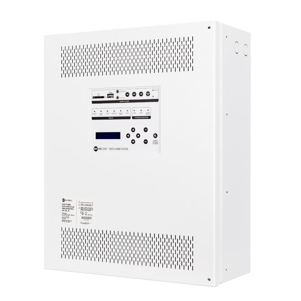 Die MX 3250 ist die Steuereinheit des Voice-Alarm-Systems DXT 3000. Sie eignet sich für Anwendungen kleiner bis mittlerer Größenordnung, die ein nach EN 54-16 zertifiziertes System erfordern. Mit ihren leistungsstarken und äußerst zuverlässigen Class-D-Endstufen bietet die Einheit eine Gesamtleistung von bis zu 250 W. Je nach Modell kann die Einheit bis zu 6 unabhängige Zonen verwalten. Darüber hinaus bietet sie die Möglichkeit, eine Reserve-Endstufe vorzuhalten. Das interne Netzteil ist nach EN 54-4 zertifiziert und die Batterien zur Notstromversorgung können im Gehäuse untergebracht werden, wodurch das System eine sehr kompakte Komplettlösung darstellt. Der integrierte DSP ermöglicht die klangliche Anpassung an die Umgebung und sorgt für eine optimale Sprachverständlichkeit sowie beste Klangqualität bei der Wiedergabe von Hintergrundmusik. Das System kann durch die Mikrofonkonsolen BM 3804, BM 3804FM und ME 3801 sowie das Tastenfeld BE3806 ergänzt werden, um Live-Ansagen zu ermöglichen.