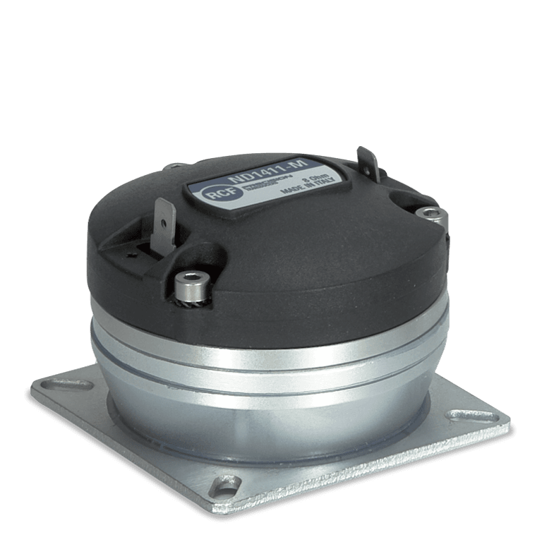 The ND1411-M is a high performance 1.5-inch diaphragm compression driver with a 1-inch exit throat featuring a single pieces, low compression, radial phase plug. The diaphragm and suspension are precision formed from 0.1mm thick Mylar. The ND1411-M is a very compact size, versatile driver for professional applications.