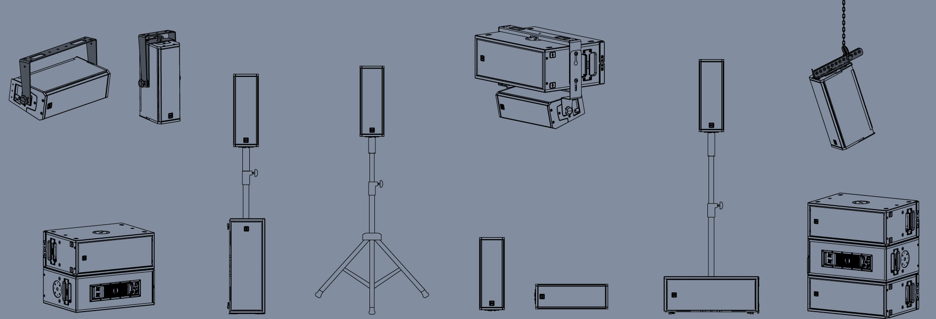 Die praktischen Quick Fit Montagebügel zur Installation von Zubehör (z.B. Klemmhalterung, Hochständerflansch, horizontale Montagebügel) sowie die auf der Ober- bzw. Unterseite des Gehäuses angebrachten M10-Gewinde gewährleisten schnelles und einfaches Rigging. Die KX 515-A findet auch auf kleinstem Raum Platz.