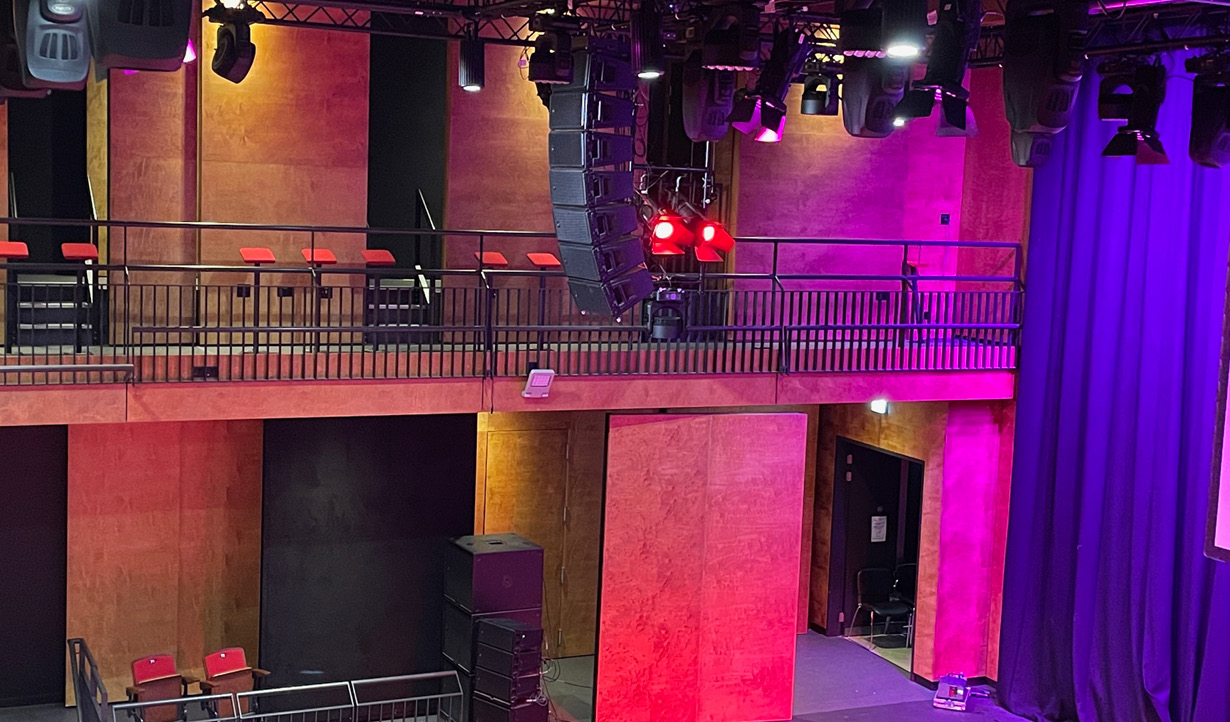 The venue’s technical manager, Dan Shilling, who joined the team in September 2021, explained that the development had taken place in three stages: the renovation of the old Fire Station into the Engine Room bar/bistro, followed by an extension on the side, and upstairs conversion into dance studios, drama studios and music spaces. The second phase saw the building of the adjacent auditorium out of the ground, on derelict land.