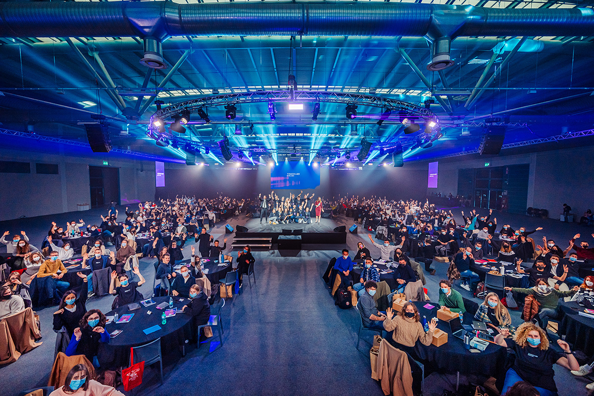 Visionary Bergamo 2021 is part of Visionary Days, a format where hundreds of under-35s discuss life challenges and ways they can shape the future. The event unfolds over 10 hours of collective brainstorming and six inspirational talks, with 500 young people involved in over 80 round tables, all while streaming live. An inspirational talk opens each session by introducing a topic and then passes the topic to the attendees to develop ideas and visions. A "dynamic poster" is then drawn up and printed at the end of the event, edited by “Lee”, an artificial intelligence, creation by the Visionary Days team.