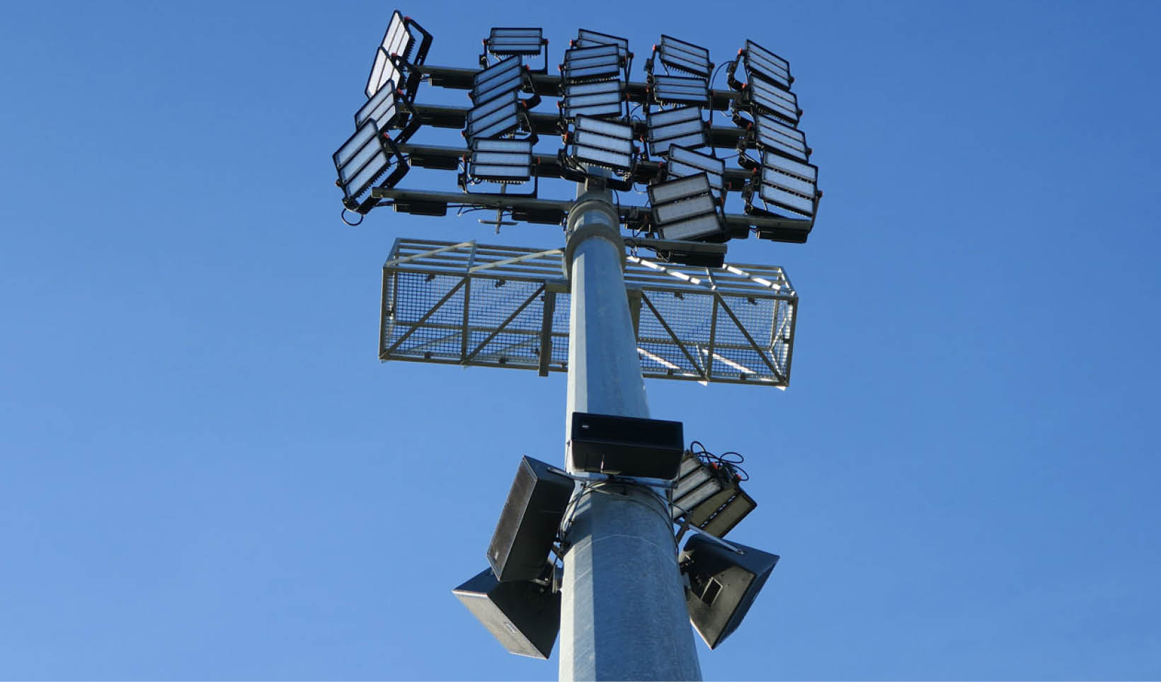 The audio solution is built around the RCF P Series loudspeakers, including the P 2110T, P 3115T, and P 4228 models. These units are strategically placed to achieve optimal sound coverage for the stands, athletic areas, and open spaces, ensuring that spectators and participants enjoy a consistent and immersive audio experience. Renowned for their outstanding sound clarity, weather resistance, and robust construction, these loudspeakers are ideal for outdoor stadium installations.