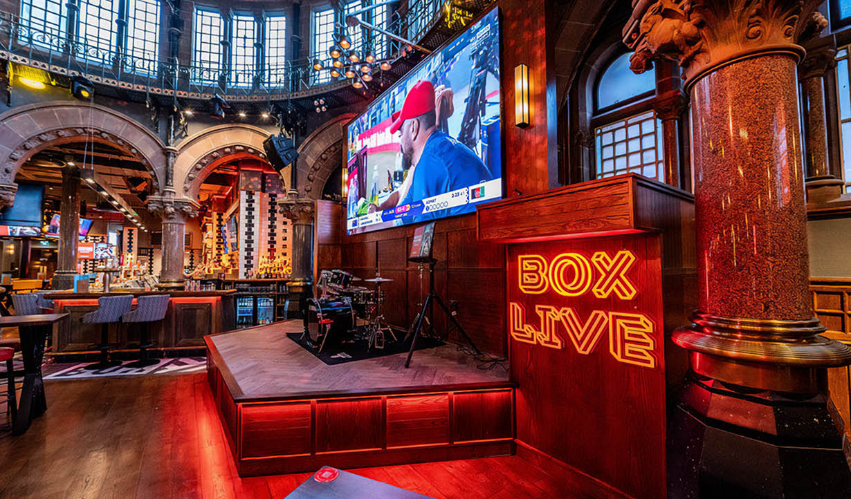 One of these is BOX, a growing collection of award winning, high-octane, American style, city centre sports bars. The latest 650-capacity unit in Nottingham opened recently in a Grade II-listed former bank building, to reveal an RCF HDL 10-A active line array, installed by Pro Technical (UK) Ltd.