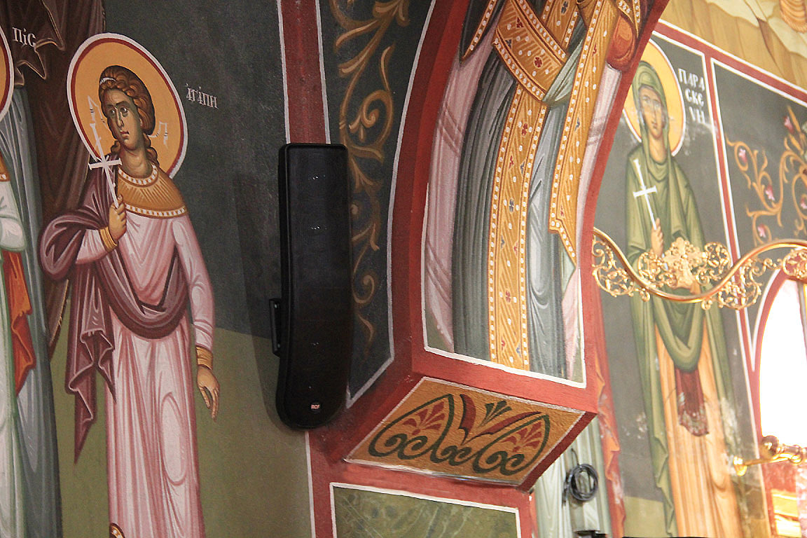 Since Orthodox churches reproduce only the spoken word and choral music, rather than recorded sounds or musical instruments Kariotis turned to high quality supercardioid mics for the cantors and highly sensitive mic caps for the priest — reinforced with high standards of power amplifiers, dynamic vocal processors, feedback eliminators, sound mixer and of course RCF L2406T columns for the main temple and RCF MQ 100L for the secondary room. A further point in favour of the RCF solution was that the priest was already familiar with the brand.