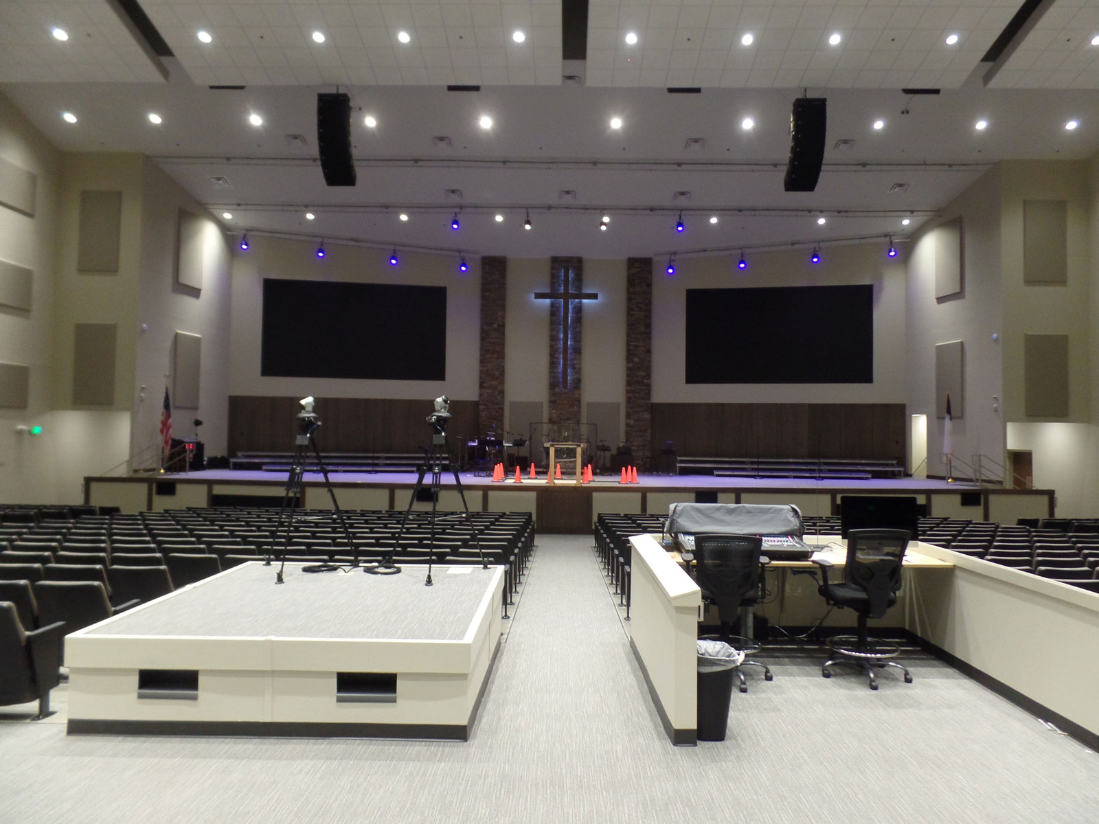 The main sanctuary is 90,000 square feet with seating for over 2,000 on the main floor and large balcony. During the two years of design and preparation, Lambs Chapel relied on Kernersville, North Carolina-based AVL Environments for consultation and implementation of their audio and visual needs.