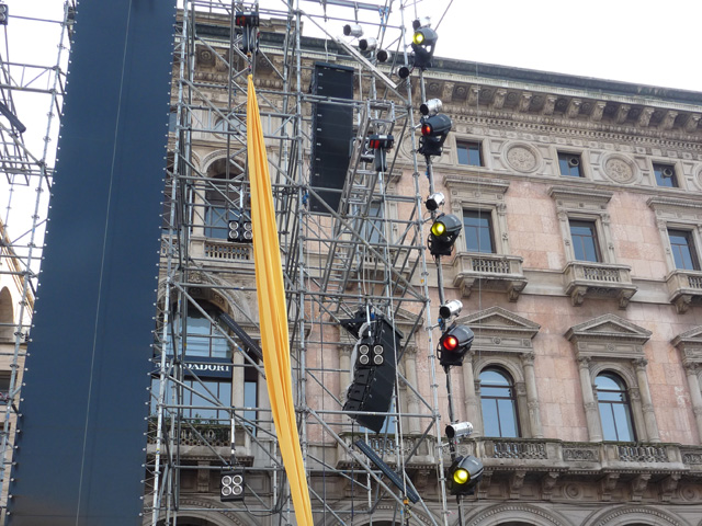 “We have been using TT+ products for a long time and we were absolutely confident that the system was the right choice for the show”, said Airone’s Fabio Pecis, ”in fact the first half of the show was dedicated to acting and cabaret so the voice dynamics were extremely important. The TT+ system worked at its best and the voice resulted clear and perfectly intelligible. Moreover, there was no feedback during the show, even when actors, equipped with head-set microphones, went in front of the stage with the main FOH system delivering a high volume output in order to cover all the vast area of the square.”