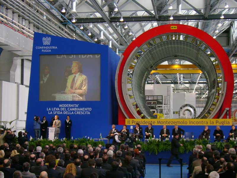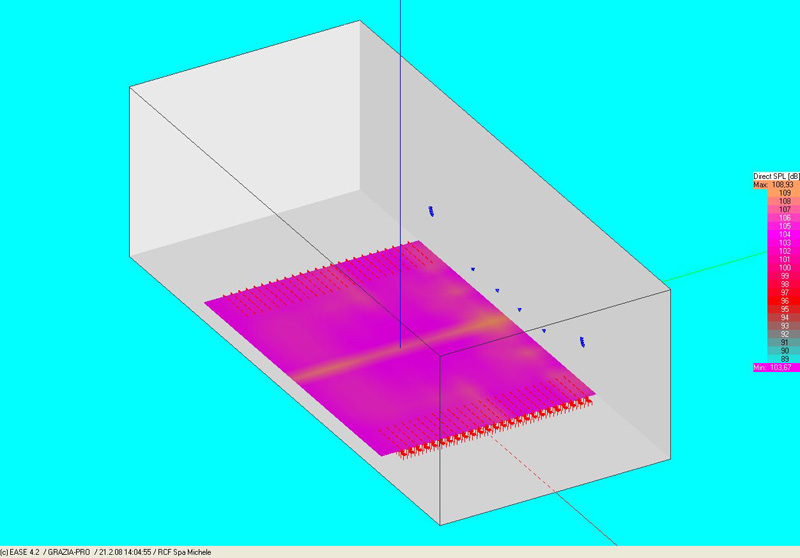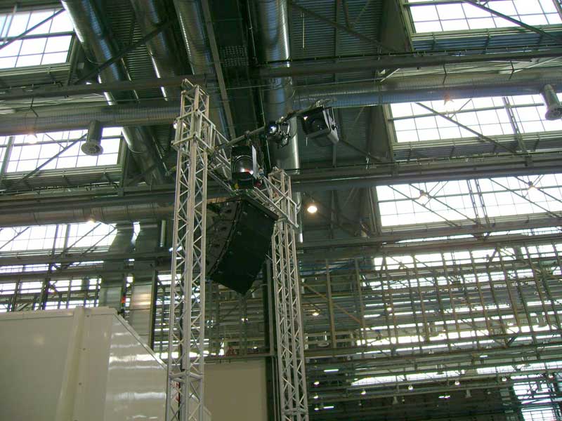 The sound system was installed by Mr. Graziano Radicci of the company Idea Concerti with the consulting of RCF for the acoustic design of the event. The huge plant, in fact, was filled with metallic structures that could damage, due to the massive reverberation of the sound, the intelligibility of the speeches. The RCF's Team went on the spot for a survey and developed, with special software, the acoustic design in order to choose the right speaker system and their its right set-up.