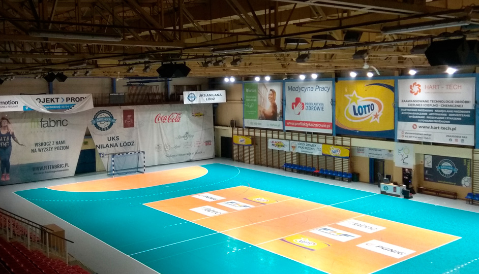 Recently, in Łódź City (Poland), under a public service contract with local government, the UKS Anilana Sports Hall was granted a new scoreboard and a complete modernized sound system upgrade to RCF— covering the playing field and the stands. The Hall is a facility with longstanding traditions, actively servicing the Łódź community for several decades. UKS “Anilana” refers to the tradition of “KS Anilana”, one of the most famous handball clubs in Poland, enjoying great popularity and winning awards during Olympic Games in the 1970s and 1980s. The capacity of the UKS Anilana Sports Hall is 22000 m3. The playing field area is 1200 m2 and can host up to 1,000 people seated in the stands. The surface of the sports field is covered with Taraflex flooring and meets the requirements of Handball Federation, Federation of professional Volleyball and Basketball.