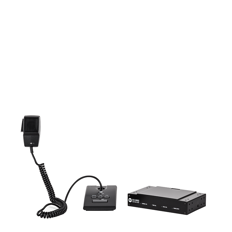BM 3222 is a desk-top paging microphone console dedicated to those DXT 9000 applications where several sets are interlinked, and local and remote calls have to be managed, such as airports gates. Made of two components, BM 3023 microphone and CB 3002 communication box, it allows It allows to make three different call types: GENERAL (to all connected zones), TWIN (to two or more adjacent zones simultaneously) or LOCAL (only to the zone of the paging microphone).
