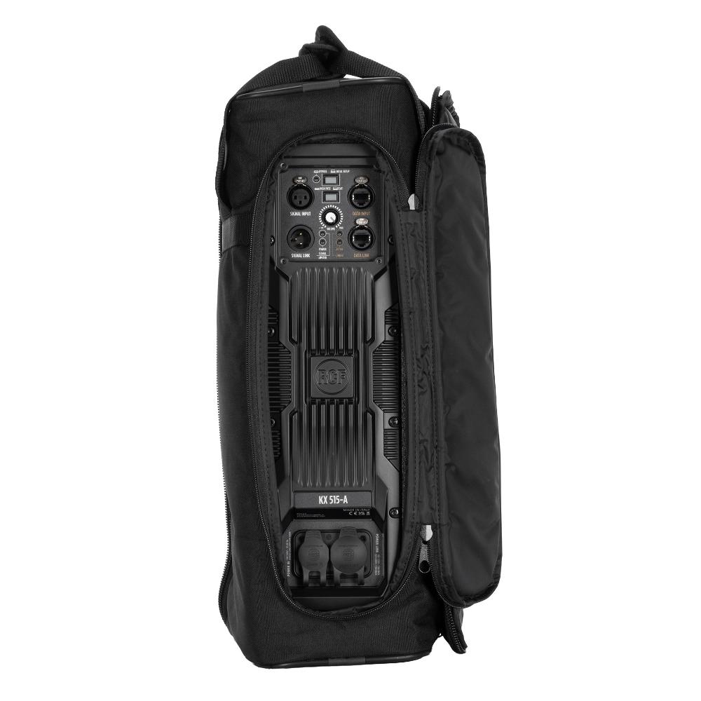 Padded travel bag for KX 515-A speaker. It features heavy-duty polyester outer fabric, foam rubber padding, zip openings and two handles for transportation.