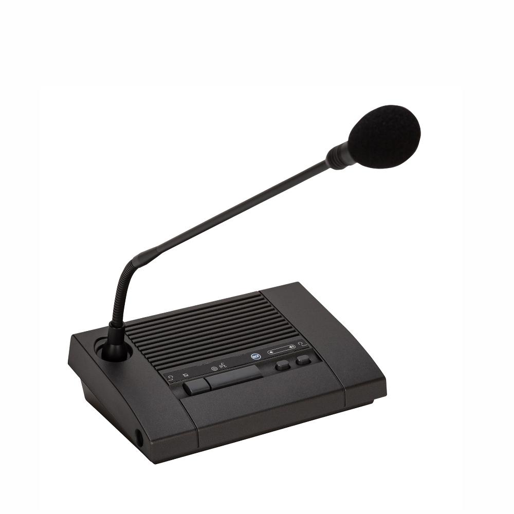 - Backlit LCD and function keys to enter the software menus and edit: Operating mode (max. number of activated delegates, max. queue length of the delegates' booking, etc.) Configuration (priority level among inputs A, B and the system; VOX function on inputs A, B; etc.) Volume levels