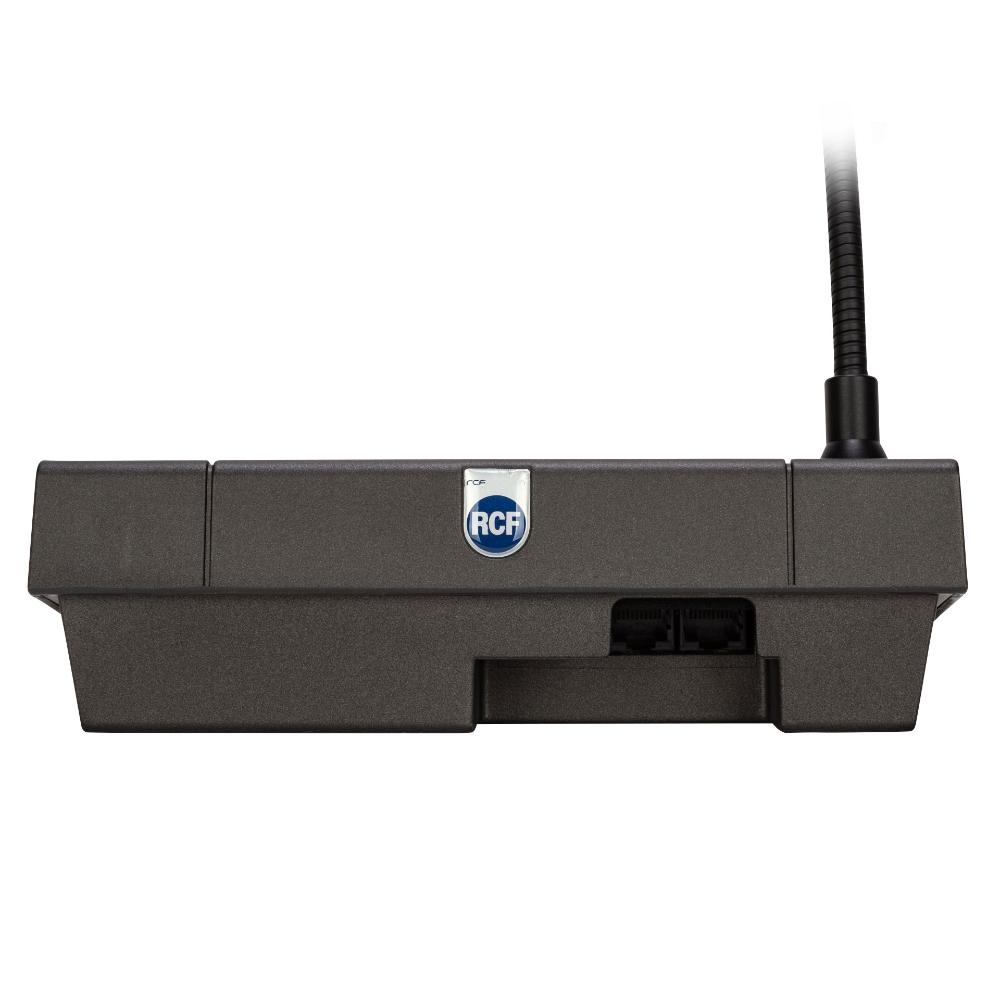 One type of console is available; through DIP switches you can configure it as Chairman, Delegate or Interpreter. An added value feature the RCF Forum 6000 System has an integrated single language interpretation facility; simultaneous or sequential Listening to the translated language is achieved using the headphone sockets available on each microphone set. The consoles configured as an interpreter can be one or two, linked to the dedicated RJ connectors on the main unit DMU 6100. Interpreters work using the console microphone and console sockets for headphone. Speak slowly command is available and lights-up an LED on the active microphone. When configured the ‘Delegate Console’ has a microphone button and mute facility, in ‘Chairman Mode’ the system offers talk and priority buttons that, if pushed together cancel the active microphones on the system for override purposes. Delegate and Chairman talk buttons are smart buttons working both as PTT or PTL (push to lock) according respectively to a long or short pressure of the buttons. On the president console a chime-tone can be associated to a priority activation of the chairman priority button; the chime sound can be also activated through terminals available on the rear panel of the master unit. Audio quality is assured by a professional gooseneck hyper-cardioid microphone that, according to the version is screwed directly into the base (fixed installations) or plugged through an XLR connector (rental/portable) and a high efficiency high intelligibility full-range speaker with neodymium magnet. Volume control is adjusted by push-buttons.