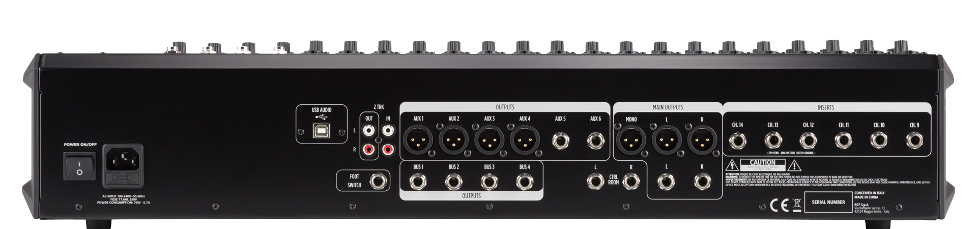 All consoles feature the newly-designed 32-bit floating-point Z.CORE DSP effects engine offering 80 predefined presets – 40 reverbs, 20 delays and 20 modulation effects – with two responsive parameters that can be freely modified to suit the needs of the mix and a Tap tempo button. Also, a storage bank of 20 user presets are available with quick recalls. The last preset used is recalled when turning on the mixer. All algorithms have been developed internally by RCF’s R&D Electronic Department, with the contribution of some of the most trusted sound engineers.