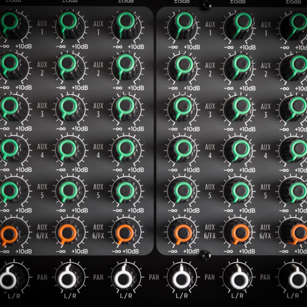 Shaping the sound is fast and precise, thanks to the ultra-musical four-band EQ, featuring two semi-parametric EQs with a narrow/wide Q selector and two shelving EQs. Theswitchable Q brings the accuracy of parametric EQ on the small form factor of the mixer.
