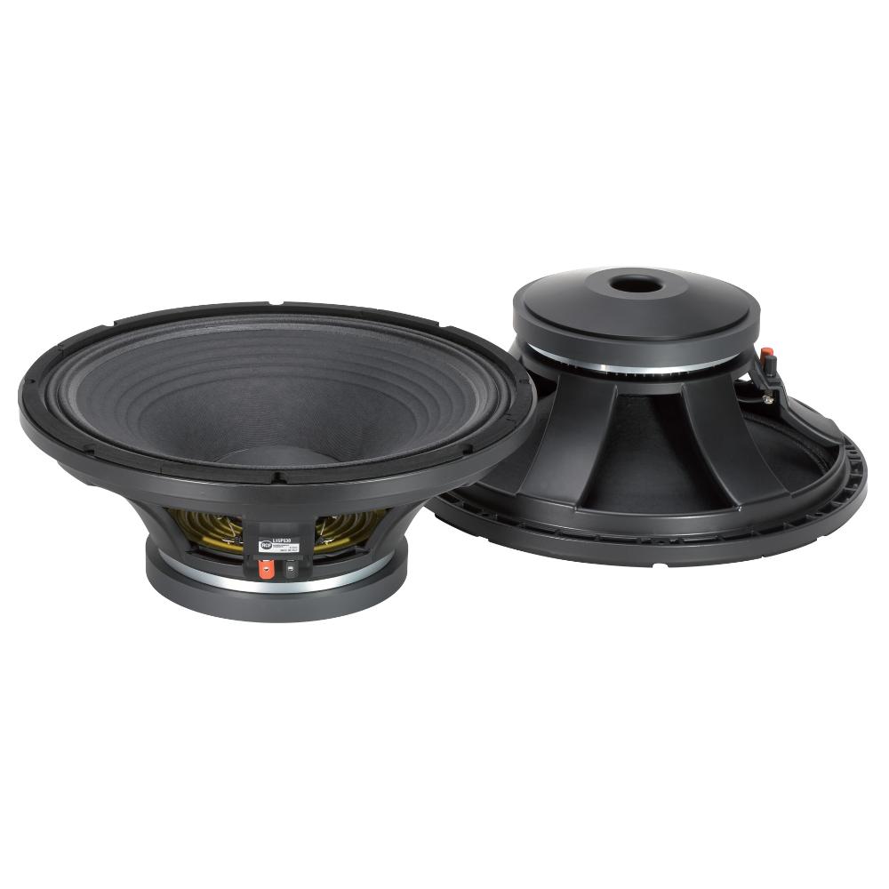 High power 15" woofer. Very good power handling, excellent linearity and very low distortion. Very efficient heat dissipation in ensured by a radiator that is part of the basket design. The air is forced in the radiator thanks to a dual sealed spider design.