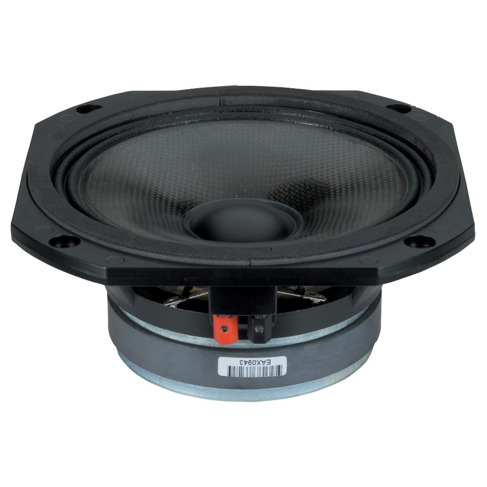 Very high linearity and low distorsion are special features of this carbon-fiber cone transducer. The use of an RCF exponential carbon-fiber cone of exceptional strength and light weight drastically reduces the break-up, thus ensuring a high level of effciency and excellent transient response. The cone is completely water-repellent. Maximum care in the selection of the components and in the assembly process make the L8S800 an extremely reliable woofer.