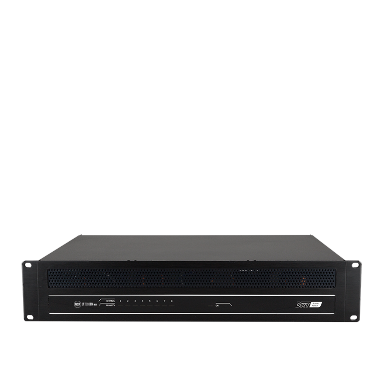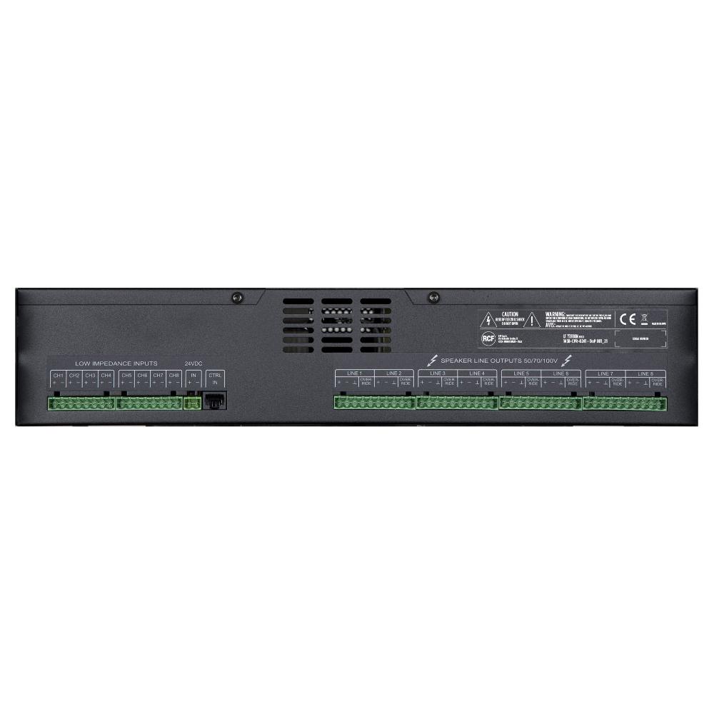 The LT 7208EN MKII unit has 8 internal transformers (80 W / each) to convert the 8 ohm loudspeakers outputs of MU 7100EN master unit into constant voltage lines (100 - 70 - 50 V) for loudspeakers equipped with line transformers. It allows to implement several power configurations, such as 8 x 80 W, 4 x 160 W and 2 x 320 W.