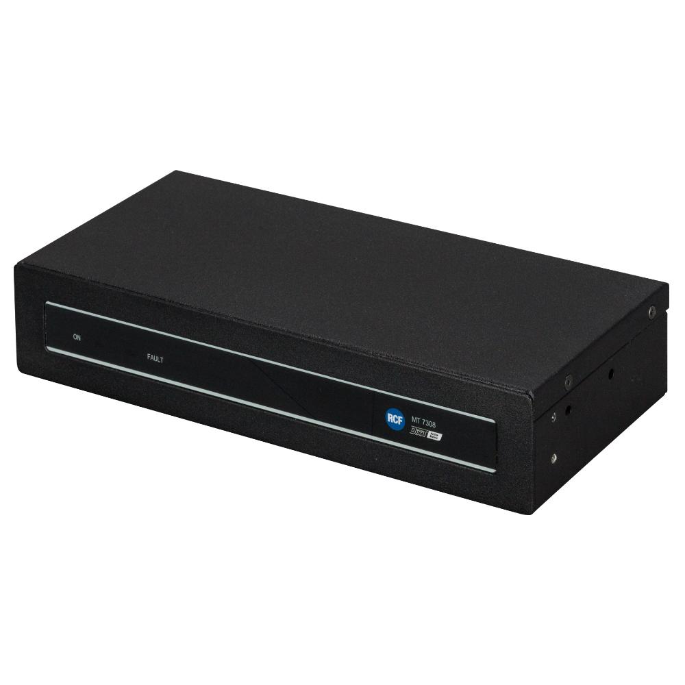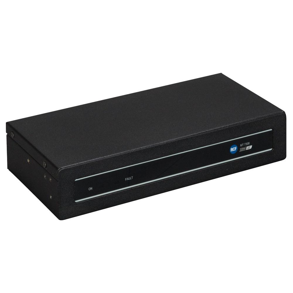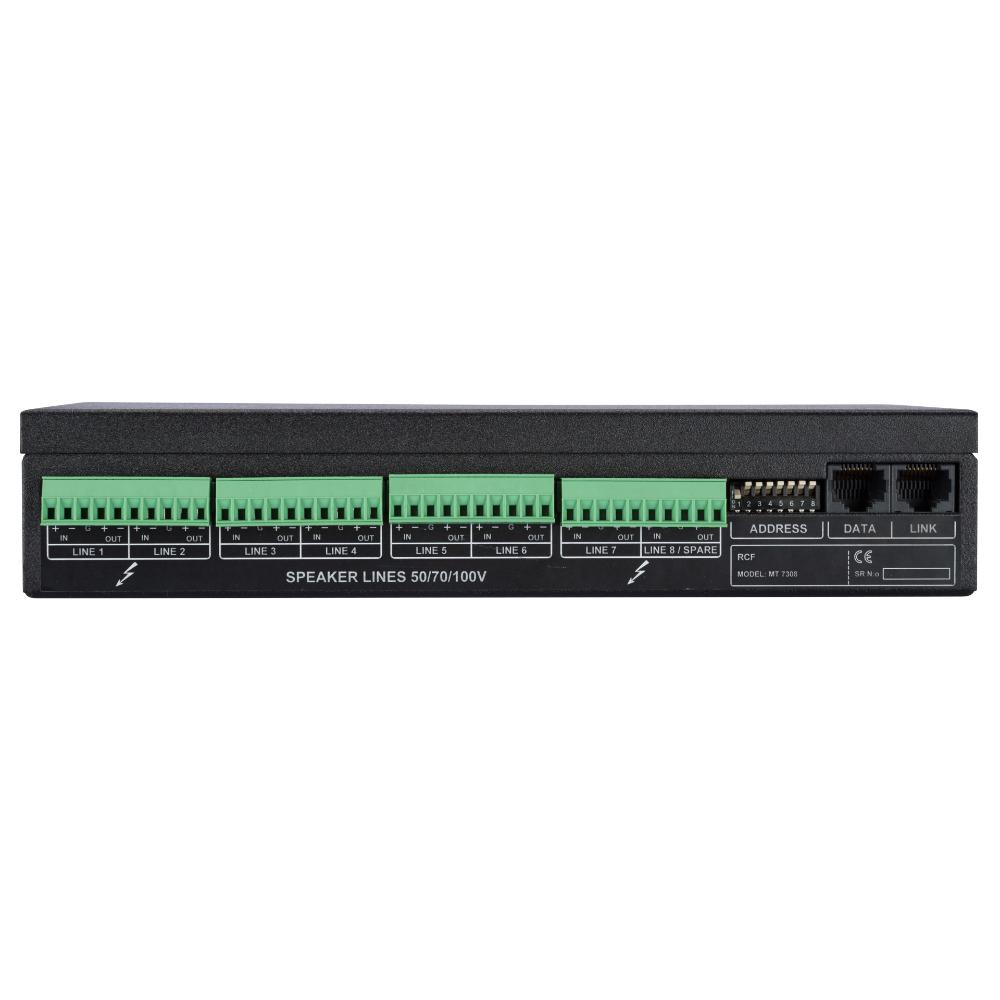MT 7308 is a power amplifiers manager unit of the DXT 7000 Voice Alarm system, suitable to control up to 8 additional power amplifiers and several speaker lines, according to EN 54-16 norm. It works connected to the MU 7100EN master unit. When speaker lines drive high power loads, it could be convenient to optimize the system configuration by using one or more dedicated power amplifiers dimensioned according the loads involved.