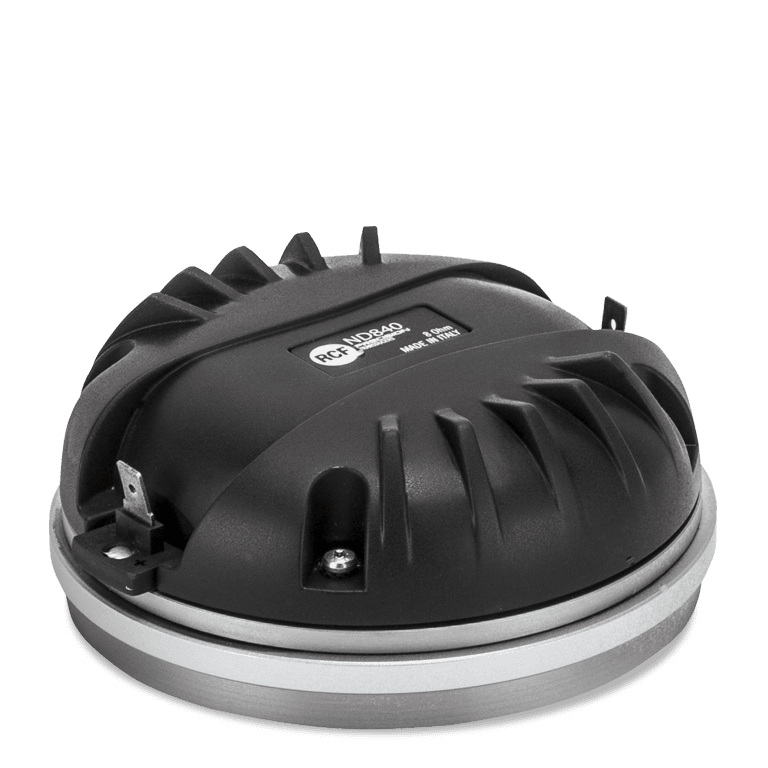 The ND840 is a high performance 3-inch diaphragm compression driver with a 1.4 inch exit throat featuring the smallest size of the art technology. The diaphragm are precision completely formed from pure titanium. Voice coil assembly is designed using high temperature kapton former and it is joined to the diaphragm by RCF proprietary Direct Drive kapton technology. Diaphragm suspension is designed by extensive FEM study for low distortion and low frequency range extension.