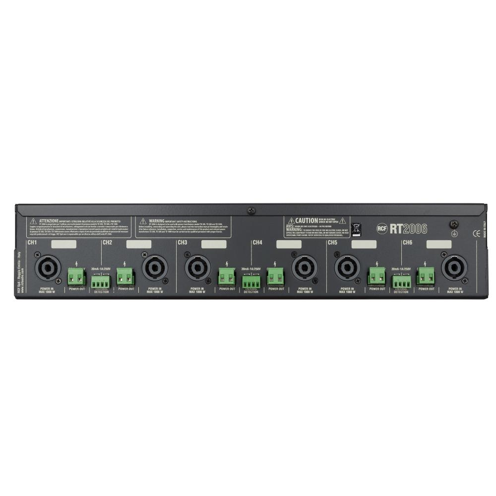 RT 2006 rack drawer allows to house and connect up to 6 transformers if TD 300, up to 4 transformers if TD 500, up to 2 transformers if TD 1000. It is also possible to combine transformers having different power. RT 2006 has a printed circuit board having terminals to connect transformers to amplifiers and loudspeaker lines. All connectors (on the rear panel) are removable and dimensioned for the maximum power. Amplifier connections are made through SPEAKON connectors. Loudspeaker line connection is made through EUROBLOCK screw terminals. Transformer thermal detection circuits have n.c. dry contacts available on screw terminals.