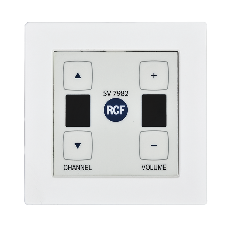 SV 7982 is a wall-mount remote control used as local audio control device. It can control a zone group volume and works as program selector. Connection to local or system bus using CAT5 or CAT6 cables.