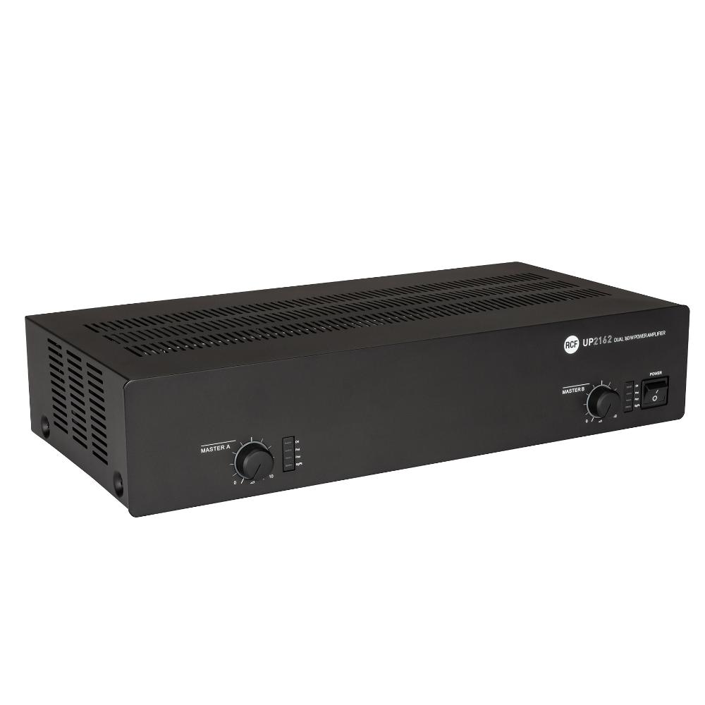 UP 2162 is a device with 2 separated and independent 160 W amplifiers, each having 2 audio inputs, of which one with priority function through a closing contact. Both the audio inputs are at ‘line’ level: for pre-amplified signals or music sources (e.g. CD players, tuners, etc.).The amplifier output is available either for low impedance loudspeakers (min. 4 O) or 100 – 70 V constant voltage line (for loudspeakers having 100 – 70 V transformers). The amplifier is Class D with switching power supply; the overall weight is extremely reduced plus it offers a wide audio bandwidth quality.
