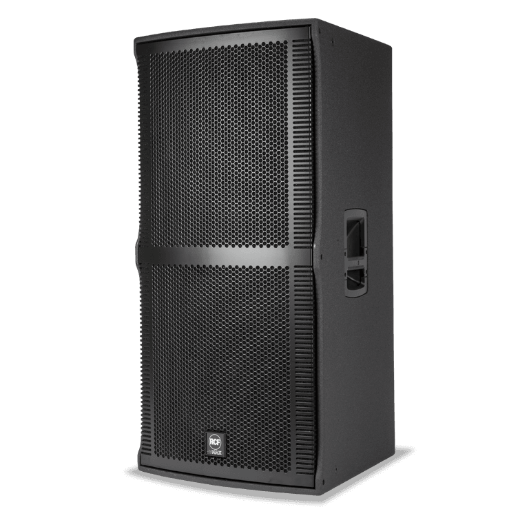 The V45 is two-way full range loudspeaker system that incorporate 2 x 15” LF transducers and a 4” voice coil, titanium, compression driver. The system is very compact and provides very high output and accurate voice and sound reproduction. The system is equipped with the latest generation of RCF precision transducers. The LF drivers are equipped with a 4” voice coil and a state of the art ferrite motor, are mounted in a vented enclosure with optimised front loading. The 4.0” HF titanium compression driver is a state of the art in compression drivers designs and is loaded on a constant directivity horn with a perfect coverage of 90° x 40°.