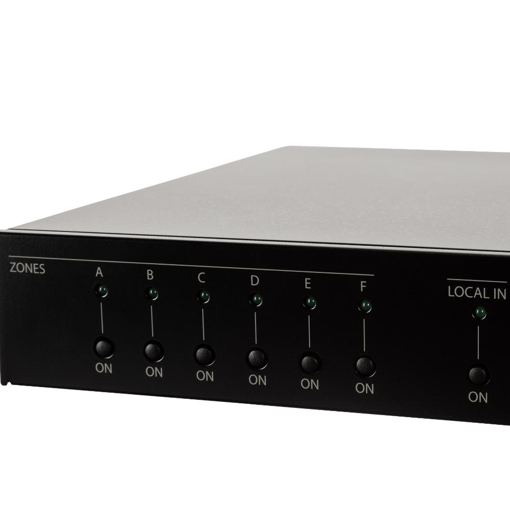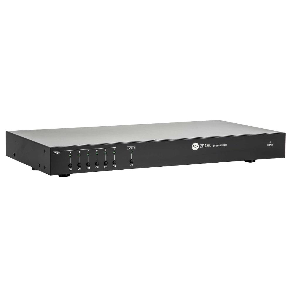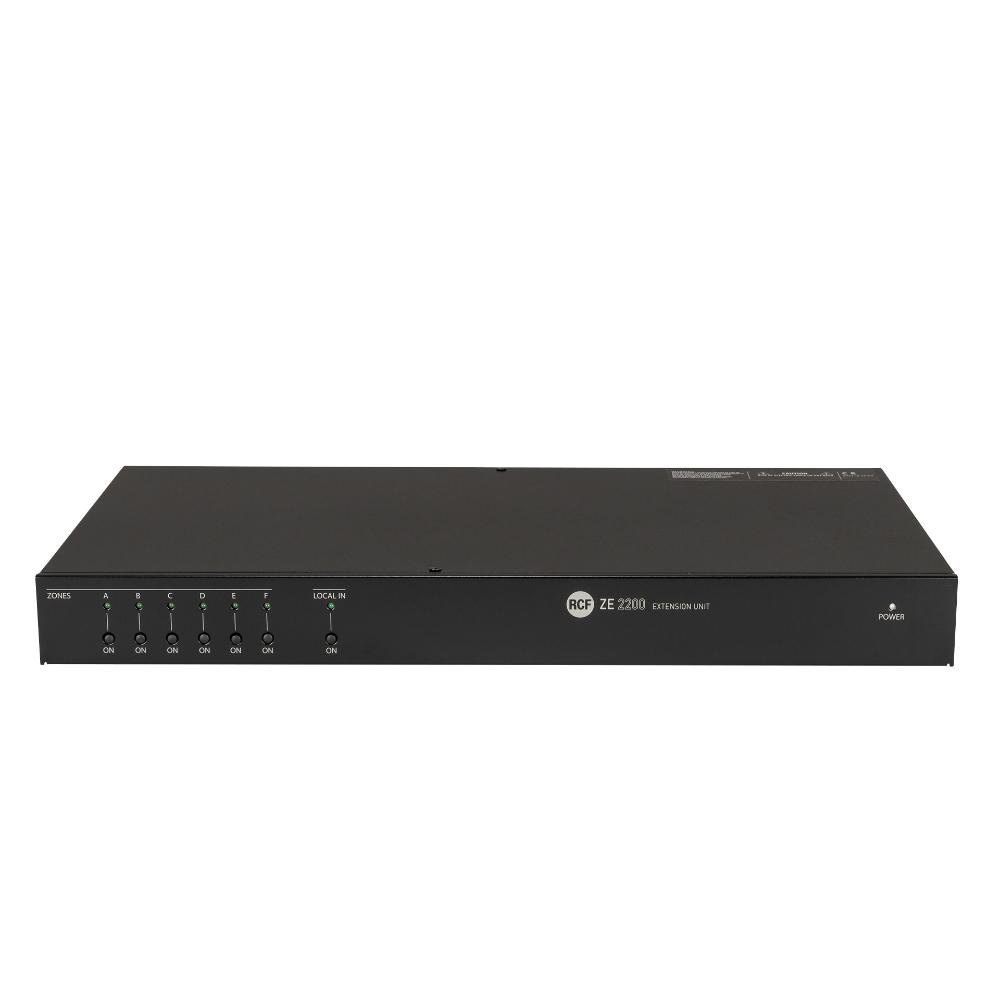 ZE 2200 is the 6 zones expander unit, allowing to increase the number of a ZM 2000 system's zones. Up to 8 units can be connected in order to reach a maximum of 54 manageable zones. It offers the possibility to either share the main unit music programme or insert a local source. As the system’s main units, also ZE 2200 is based on a dual bus architecture, where the first bus is mainly dedicated for selective / all-call paging, while the second bus is for music distribution (or other signals).