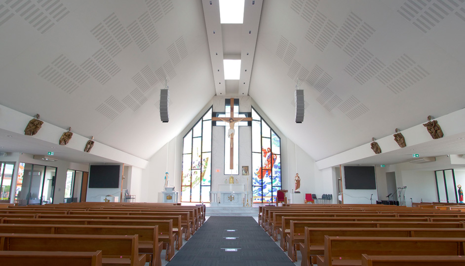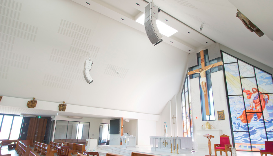 The Saints Hoan-Thien Catholic Centre in Keysborough, Victoria, is situated on 4 hectares of land owned by Melbourne's Vietnamese Catholic community. Over the years, the Community Centre has been the site of many milestones for the local Catholic populace, such as festivals, congresses, and celebrations. Across from the cardinal building lies the 'Our Lady Of La Vang' shrine, a newly completed house of worship that has been a long-term labor of love for the fellowship. Within the bright inner expanse of the shrine, the building's crisp white roof dominates the architecture. Hanging cleanly from either side of the far end, sit two compact RCF line arrays. Looking almost transparent in their optional matte white finish, the HDL 6-A modules blend perfectly into the supernal scene. Supplied by Factory Sound in Melbourne, and recently set up by installer UB Group, the system provides Front of House audio coverage for voice reinforcement, music playback, and occasional live instrument reinforcement for the venue's regular church Services.