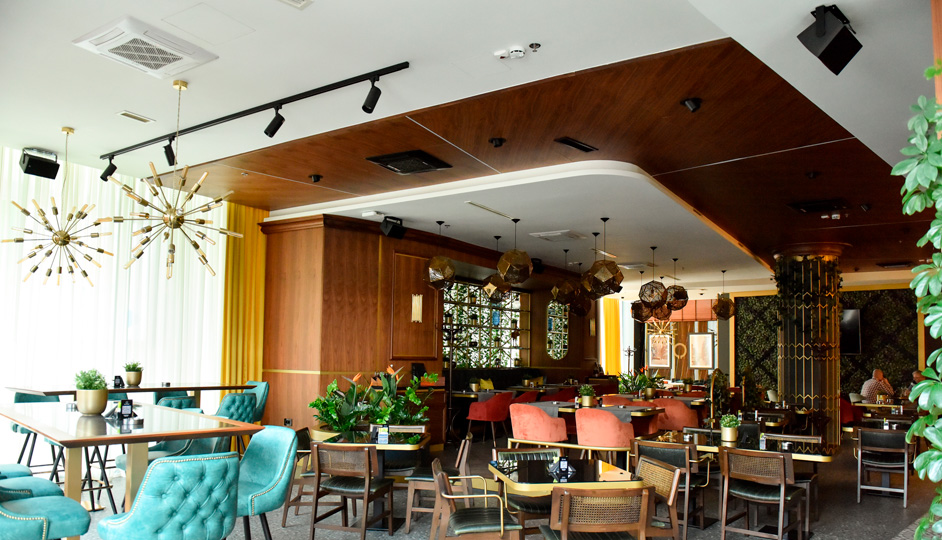 The indoor sound system of the restaurant consists of RCF M 501 Media Series, evenly distributed throughout the dining area. The M 501 is a multipurpose two-way full-range speaker system, suitable for a wide range of indoor applications. Its compact, elegant and neutral design makes the M 501 a good choice for many environments, with available mounting accessories for wall or ceiling positions.