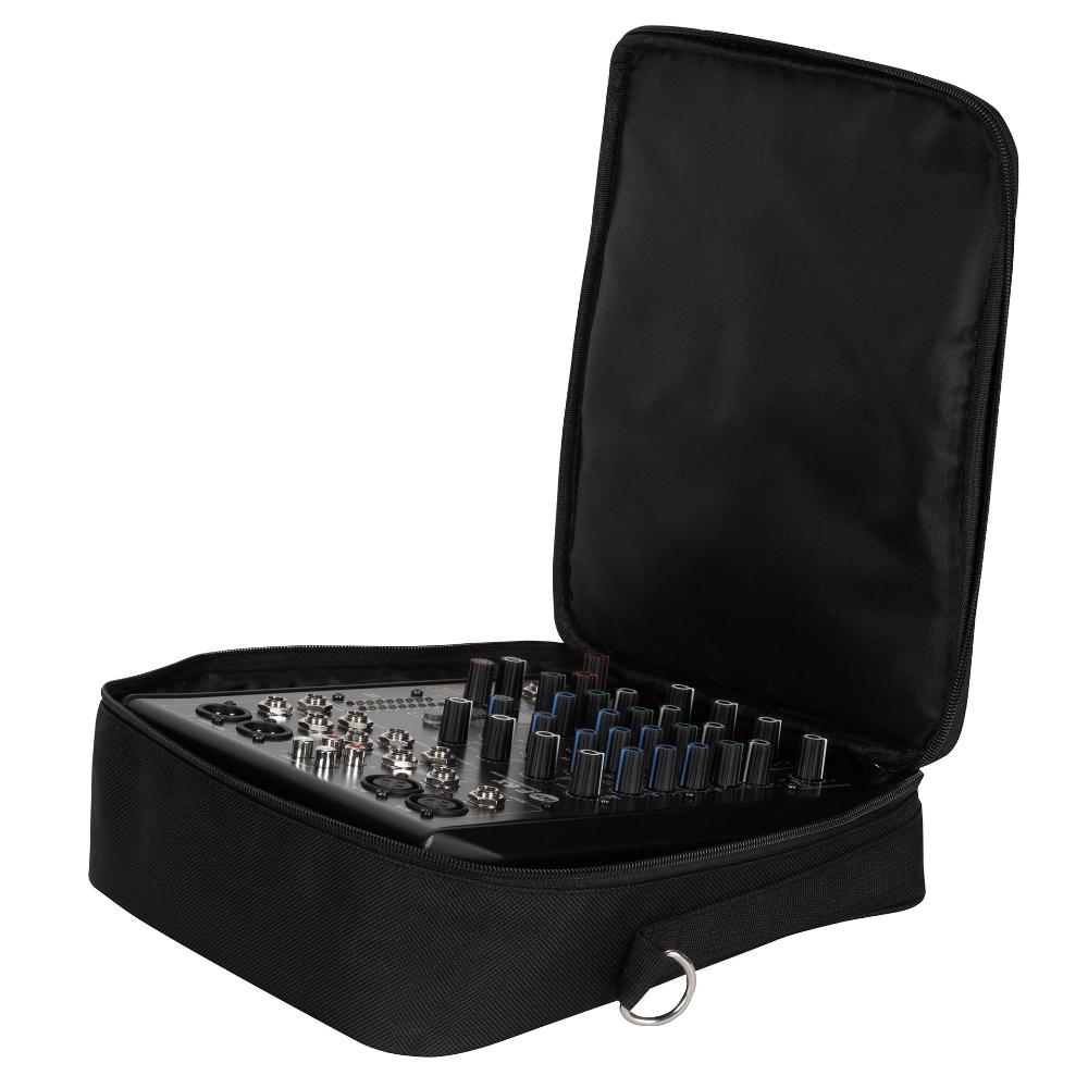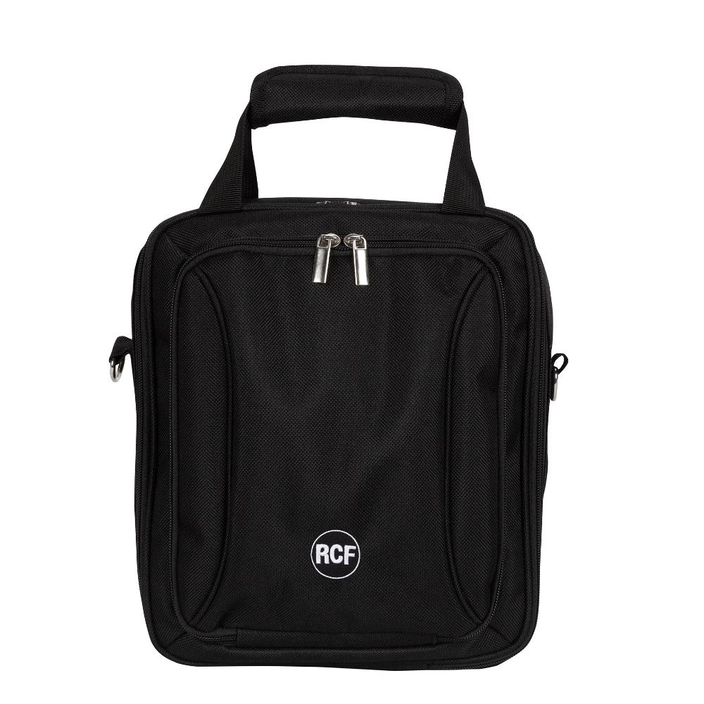 Padded duffle bag for mixers RCF F 6X with handle and shoulder carrying strap. Wide front pocket with separated compartment for tablet computers or other accessories.