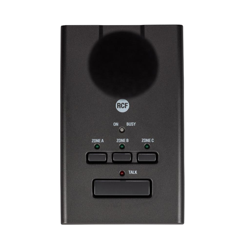 The BM 3003 paging microphone allows to make selective calls to 3 zones and is the ideal complement of the RCF ES 3323 mixer amplifier (with tuner and CD/USB-MP3 player inside). The inputs 2 and 3 of the RCF ES 3323 amplifier have a RJ 45 port (each) to connect a BM 3003 paging microphone quickly and directly (through CAT 5 cable) or a line made of max.12 BM 3003 paging microphones by using 1 or more additional power supply units.