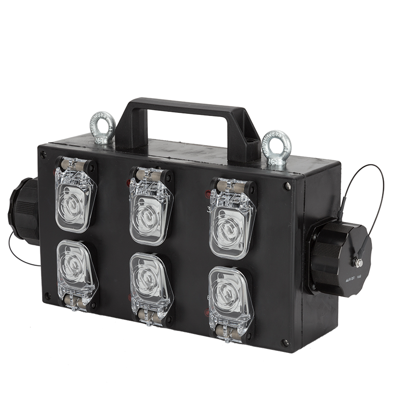 LKS19 input to 6x Powercon outputs with Neutrik® weather protection. 1x LKS19 output.