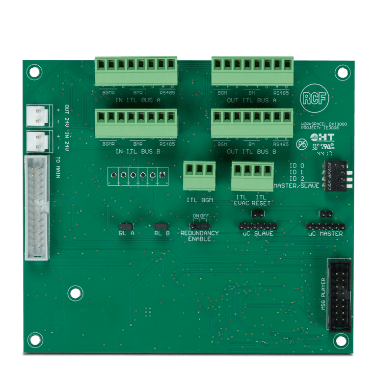 El IT 3010 es una placa adicional para el sistema de alarma por voz DXT 3000, que solo se debe usar en combinación con el panel de interconexión IE 3008. Gracias a sus seis transformadores de línea, es ideal para aquellas instalaciones donde la señal de audio se pueda ver afectada por ruidos altos en las conexiones de las unidades del sistema. Además, ofrece la posibilidad de conectar unidades DXT 3000 utilizando tanto las borneras extraíbles como las conexiones RJ-45, lo que mejora la flexibilidad y eficiencia de la instalación.