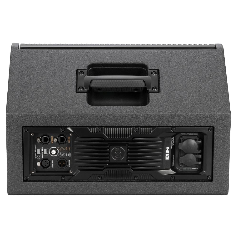 The KXM 20-A is a high-output, two-way active stage monitor engineered for clarity, control, and fast deployment. Delivering up to 134 dB SPL Max with a 2000 W Peak Class-D amplifier, it provides 90° x 70° constant-directivity coverage for a stable monitoring window and predictable off-axis response. The multifunctional cabinet features a symmetrical transducer configuration to ensure consistent voicing across the listening area. Two 8” neodymium woofers with 2.5” voice coils deliver punch and headroom, while a horn-loaded neodymium compression driver with a 3” voice coil ensures strong vocal presence and projection. Integrated DSP processing with FiRPHASE and BMC improves coherence and definition in real-world conditions, and onboard RDNet control enables centralized monitoring and control for efficient stage workflows. The multifunctional cabinet makes KXM 20-A equally effective as a stage wedge or as a controlled point source in portable FOH or fill applications.