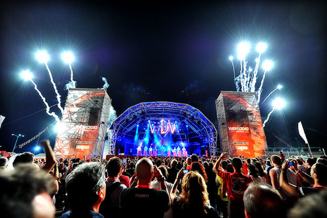 From the 10th to the 13th of June, RCF’s new large format active line array system reinforced the huge World Ducati Week 2010 celebration at the Misano Adriatico motor circuit – where the World Moto GP championship runs once a year. 60.000 “Ducatisti” coming from all over the world gathered to celebrate one of the Italian’s excellence in motorbikes manufacturing and racing.