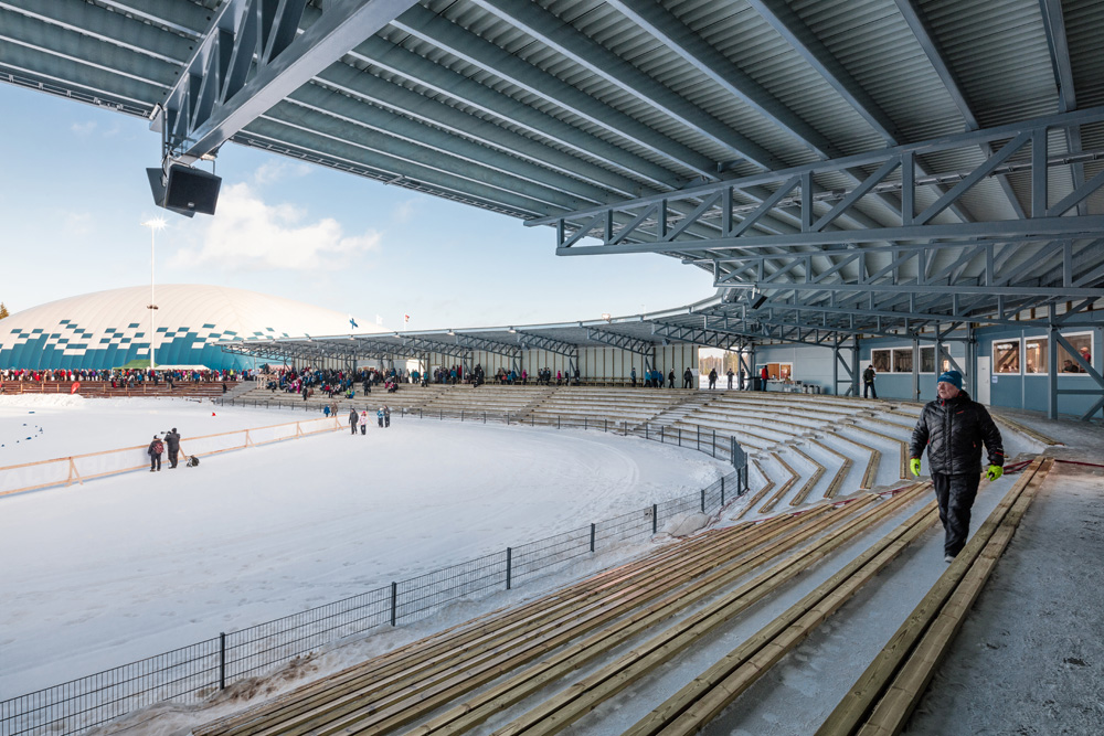 By relocating the former baseball stadium from the city centre and combining it with the ice rink (and the other winter sports pursuits), the city of Imatra has set a high benchmark. And with many different world-class events scheduled to take place here, a cutting edge communication infrastructure — with both state of the art audio and visual components — was essential to reflect this.