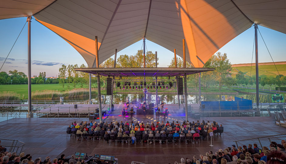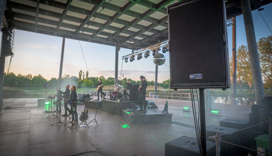 Night Fever is one of the most successful and authentic BEE GEES tribute shows worldwide. Like hardly any other group, the three professional musicians from Germany know how to bring the music of the legendary BEE GEES to the stage. As part of their extensive tour, the band made a stop on the Seebühne, a nicely set open-air stage, at Elbauenpark in Magdeburg (Germany). To stage the show acoustically perfect, event professional DALTERIO Eventtechnik trusted in the HDL 30-A system from RCF. The HDL 30-A of Italian traditional manufacturer RCF, which is celebrating its 70th anniversary this year, is the compact active 2-way line array system for medium to large events – a perfect choice for the Seebühne in Magdeburg.