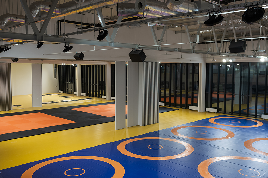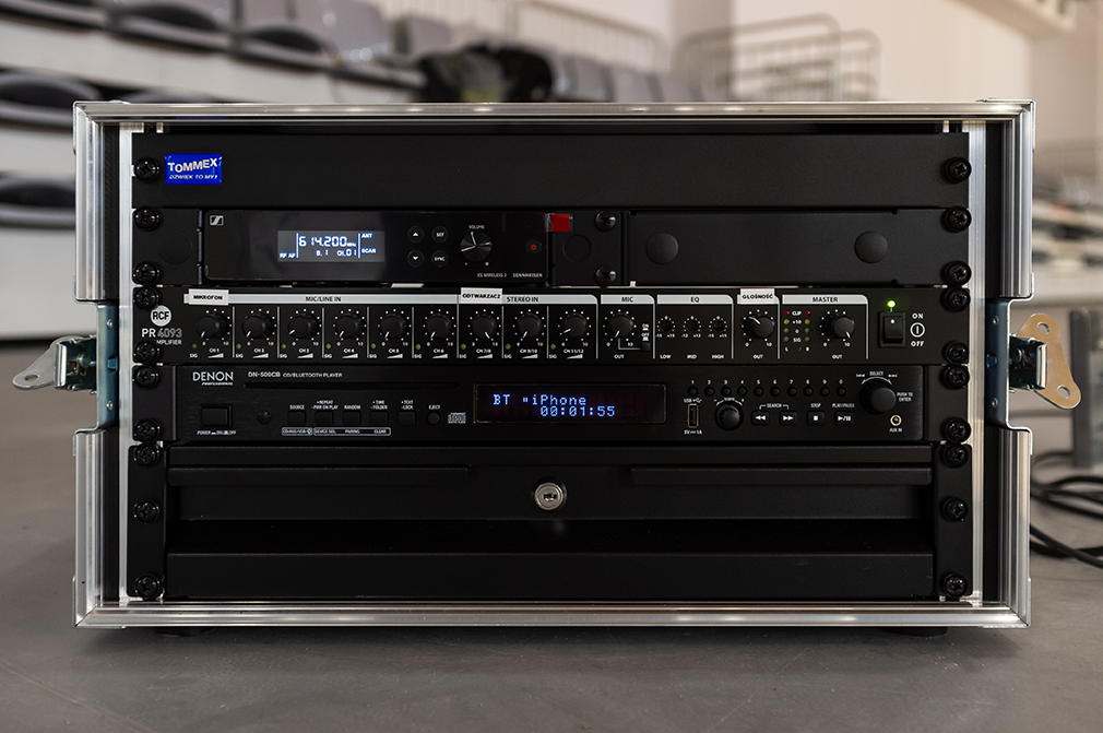 The Hall of Combat Sports in Wrocław is a part of an expanding sports complex located on Racławicka street in the city of Wrocław, built on the ruins of old swimming pools. The complex is owned by WKS Śląsk Wrocław (WKS denoting Army Sports Club). The Hall serves the town’s citizens and the WKS Śląsk club members in four combat disciplines: classical wrestling, judo, boxing, and weightlifting. The total area of the complex covers 3.200 square meters. The main hall has expandable stands for 400 seats and can be divided into four independent zones, each with 100 seat capacity, using moveable walls. Additional viewers/fans can also observe their favorite sportsmen from the balcony. The Hall’s sound system can work in multiple zones, independently controlled. The new sound system, designed by TOMMEX, official distributor for RCF Install products in Poland, is based on RCF Compact M Series. Compact M12s were used for the sound on the main competition area (two speakers per zone), while Compact M08s were installed on top of each stand (two speakers per zone). Four mobile rack stations manage the sound of the hall, located in each competition area: One main 15U rack with 16-ch analog mixer, microphones receivers, and audio player, and three 6U racks with RCF PR 4093 analog mixers, microphones, and audio player. Additional wireless control of the system is available using a tablet – with zone selection, mute, volume control, connected to the internal WiFi network.