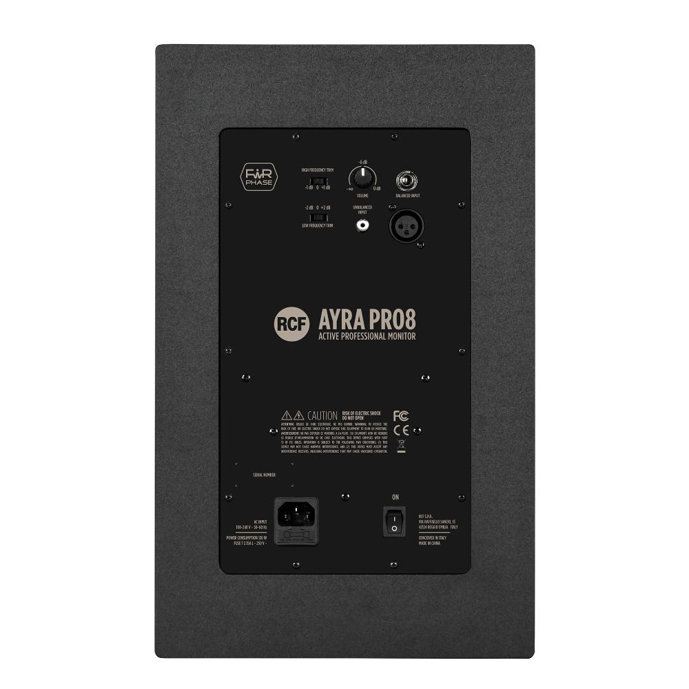 Le moniteur de studio AYRA PRO 8 fonctionne parfaitement dans n'importe quel environnement d'écoute. Qu'il s'agisse de petites ou grandes structures de production, il reste absolument neutre. Il assure une écoute de contrôle précise et constitue pour l'ingénieur du son ou le producteur un outil vraiment neutre pour analyser les enregistrements et optimiser le mixage. C'est pour cette raison que nous l'avons baptisé PRO. Doté d'un puissant DSP interne dédié pour optimiser la réponse en fréquence et la dynamique, fonctionnant en tandem avec le traitement exclusif RCF FiRPHASE et des composants sélectionnés, l'AYRA PRO est le premier moniteur de studio de sa catégorie à afficher une exceptionnelle rotation de phase de 0°.
