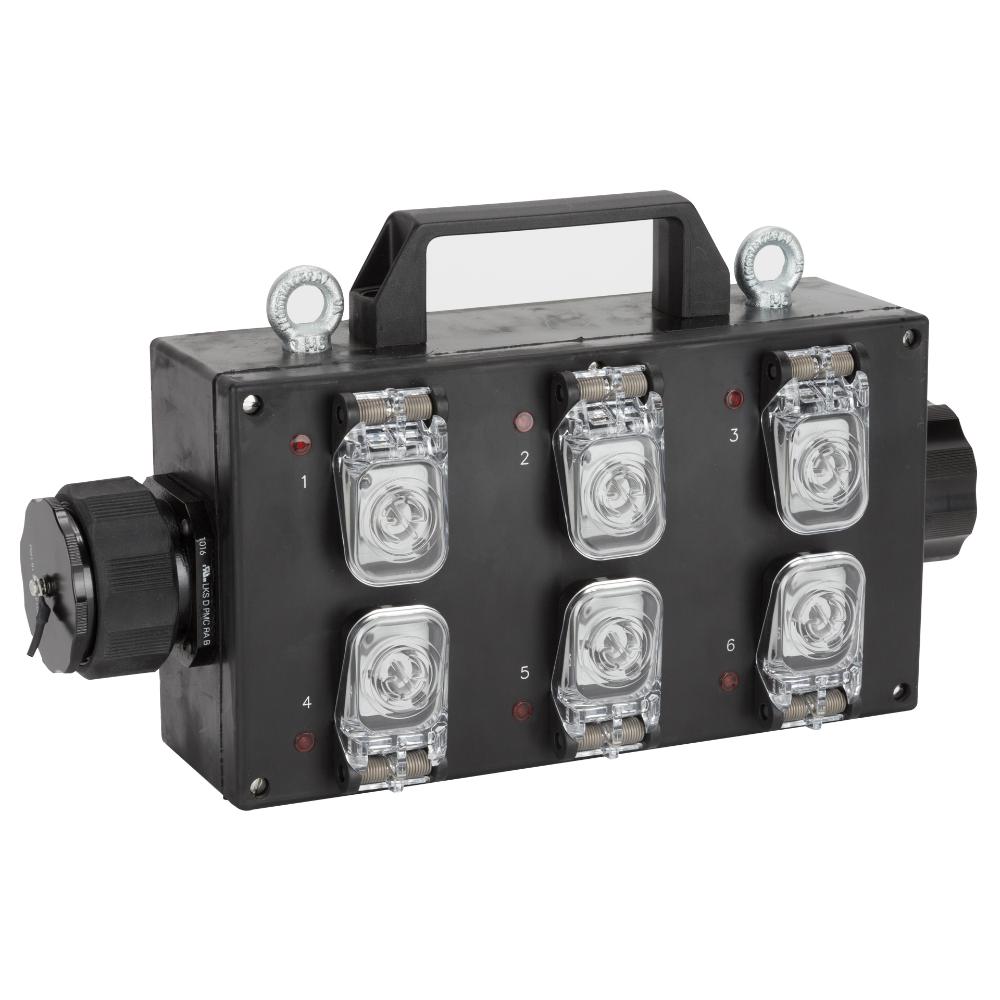 LKS19 input to 6x Powercon outputs with Neutrik® weather protection. 1x LKS19 output.